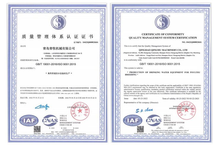 青島青牧機(jī)械有限公司成立于2013年,是一家集研發(fā)、生產(chǎn)、銷(xiāo)售、服務(wù)于一體的綜合性企業(yè)。公司專(zhuān)注于家禽飲水設(shè)備的研發(fā)和生產(chǎn),擁有專(zhuān)業(yè)的研發(fā)團(tuán)隊(duì)、先進(jìn)的加工設(shè)備以及自動(dòng)化組裝線(xiàn),力求打造“簡(jiǎn)單、高效、環(huán)保”的高端禽用飲水系統(tǒng)。